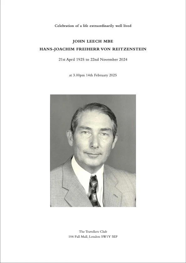 The life of my Uncle Hansi, John, spanned three quarters of the 20th Century and a quarter of the 21st. In many ways, his life was moulded by the central trauma of the 20th century, World War 2 and its aftermath. He was born in Potsdam in 1925. His mother came from a formerly Jewish family and his father was a Protestant German Baron. Both parents were writers and anti Nazi. His father died in 1935 when Hansi was ten, and in April 1939, aged just 14, he left Germany for England, thanks to a charity which introduced him to and placed him with the Leech family, where he became a brother to my father who was just a year older than him. At the last minute, his mother came too, but not his older sister Finette who finally got to England with three year old Johnny just after the War; tragically Finette died of TB weeks after being reunited with her family.